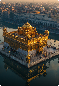 The Golden Temple in Amritsar radiates peace and devotion, with shimmering gold, sacred sarovar, Sikh prayers, and langar serving millions selflessly.